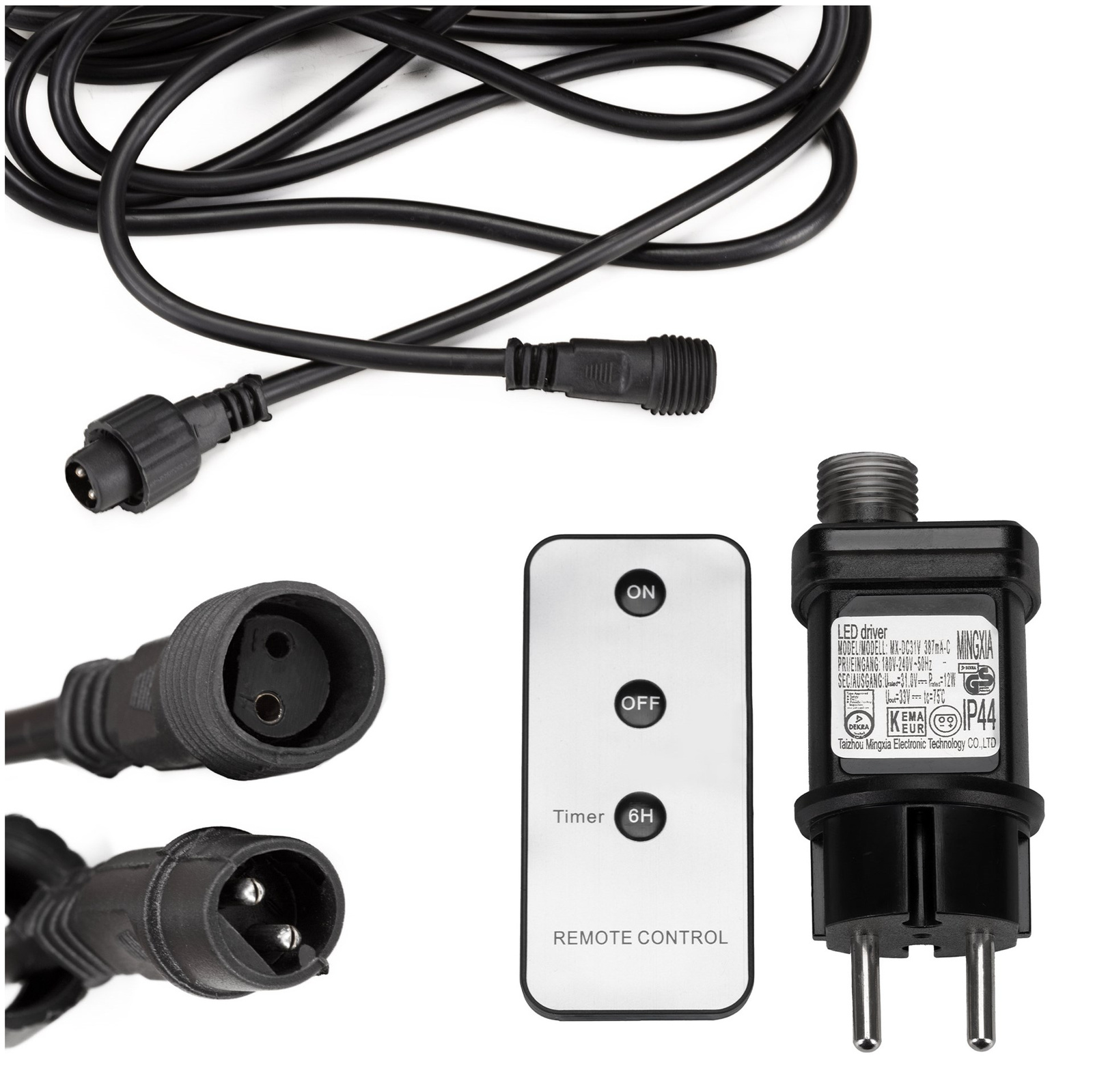 Zestaw przedłużacz 5 m zasilacz PRO do lampek choinkowych + pilot z funkcją timer