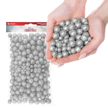 Kulki styropianowe 28g brokatowe do dekoracji stroików choinek srebrny